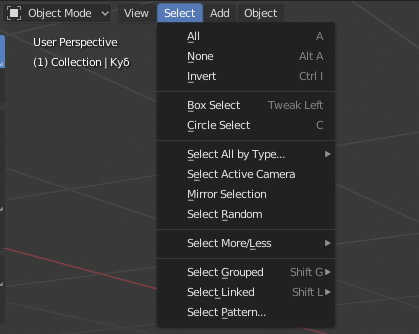 Как выбирать объекты (и снимать выбор) в Blender?