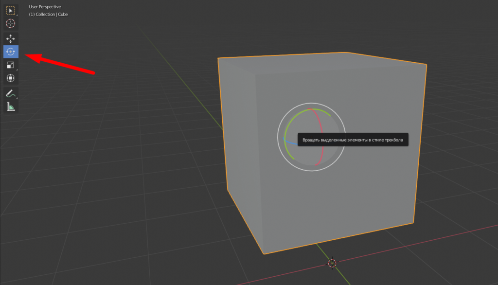 - Если нажать на цветную линию, то можно вращать объект по оси выбранной оси.
