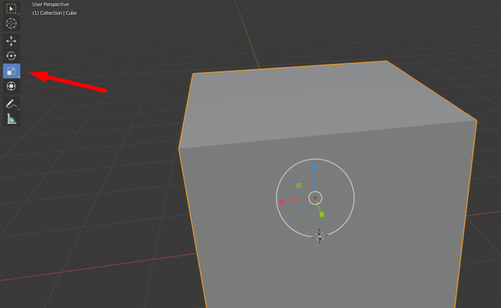- Если нажать на один из маленьких кубиков, мы будем масштабировать объект по одной из осей.